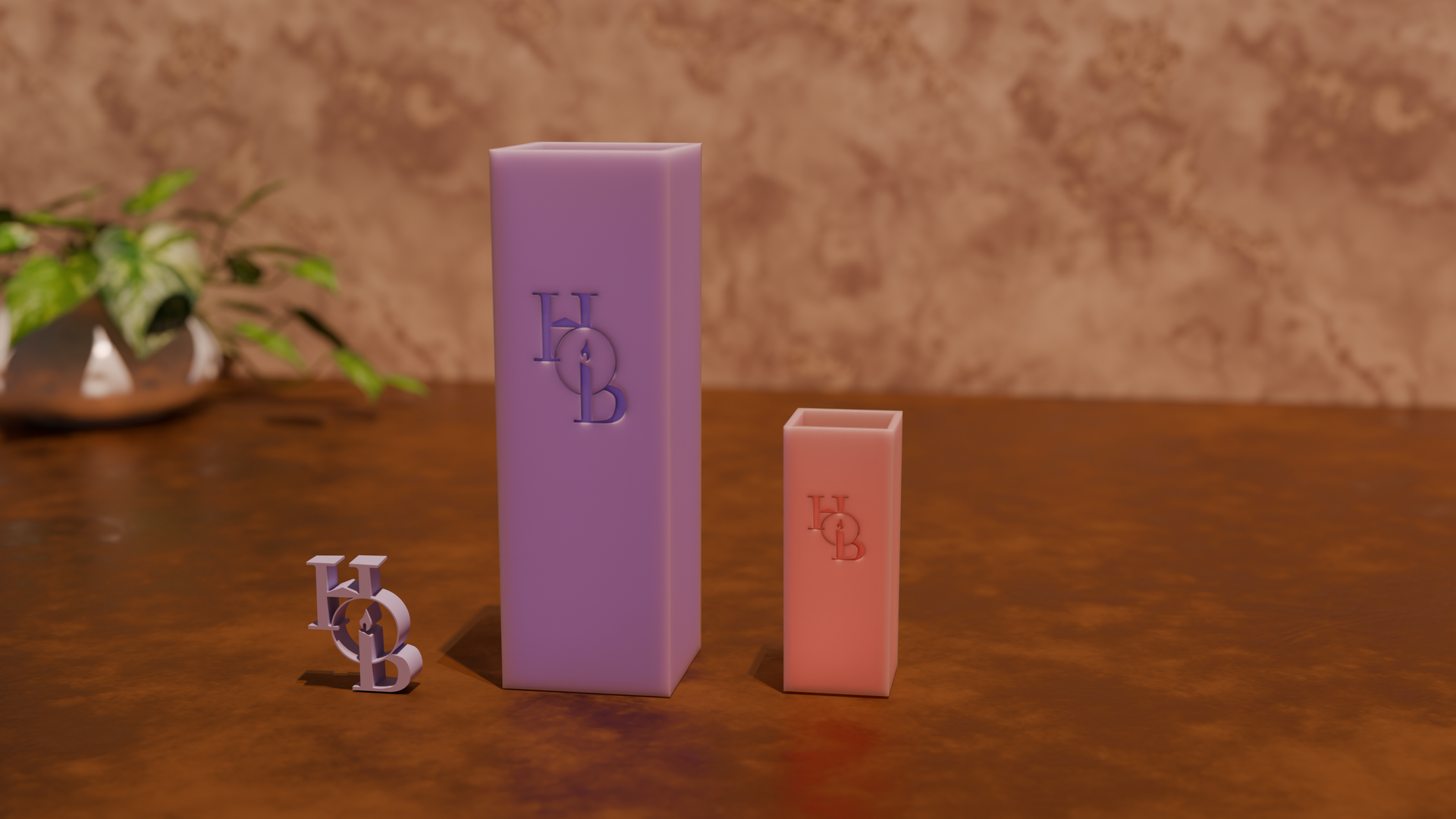 We took their exisiting 2D logo and brought it to life as a 3D digital model. We then created the the two pillars to the clients specifications. Once the candle model was made to specification, we cut the logo into the mesh of the 3D model, raising it from the front of each candle, so that their was extra space for the wax to fill the logo outside of main mould faces. This meant the logo would be raised in 3D, coming out of the candle face when it is pulled out of the mould. Finally we took the care to adjust the models, to ensure they would print in a 3D printer.